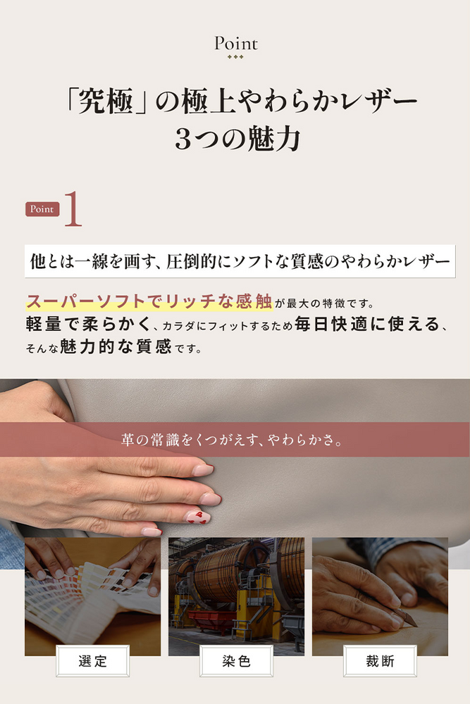 荷物を入れるとくたっと柔らかく馴染み、体にフィットする快適な使い心地も魅力。