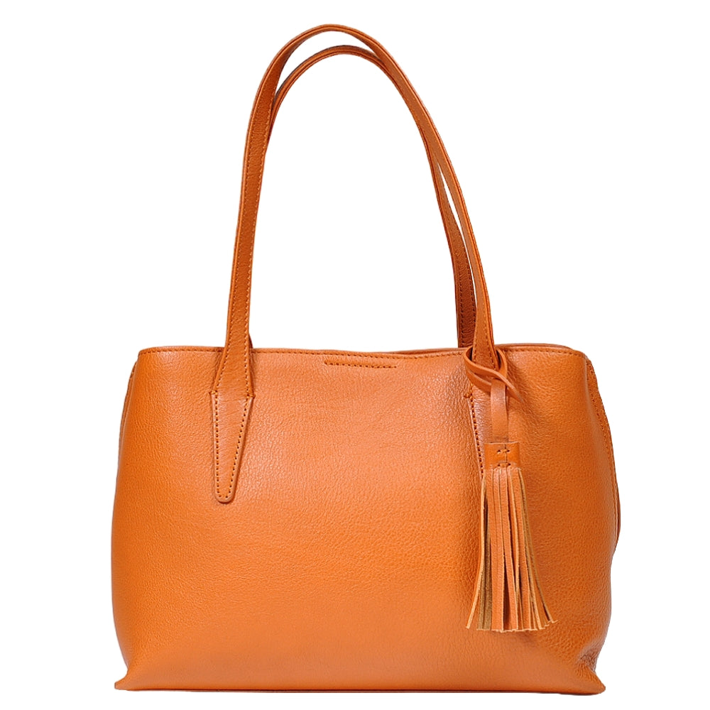 前後にあおりポケットがついた3層構造のハンドトート。