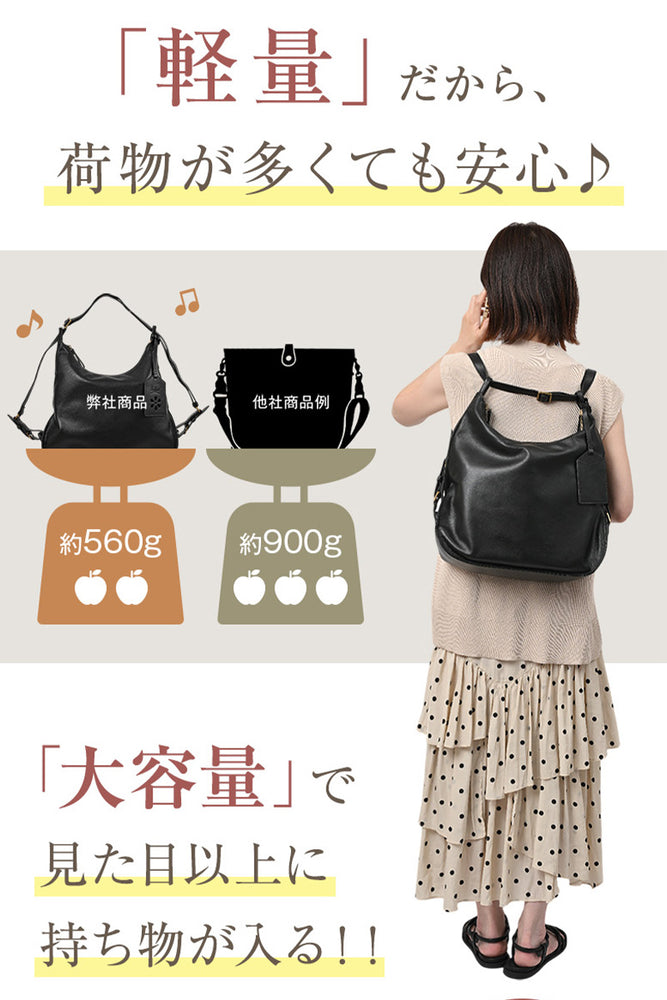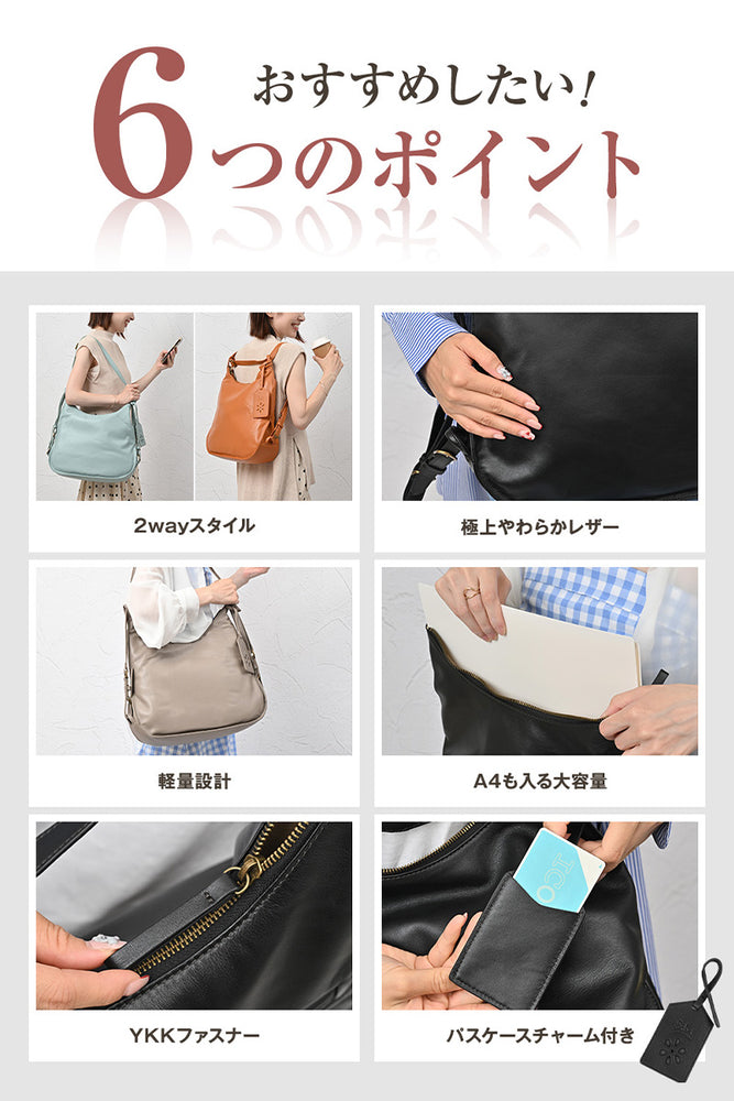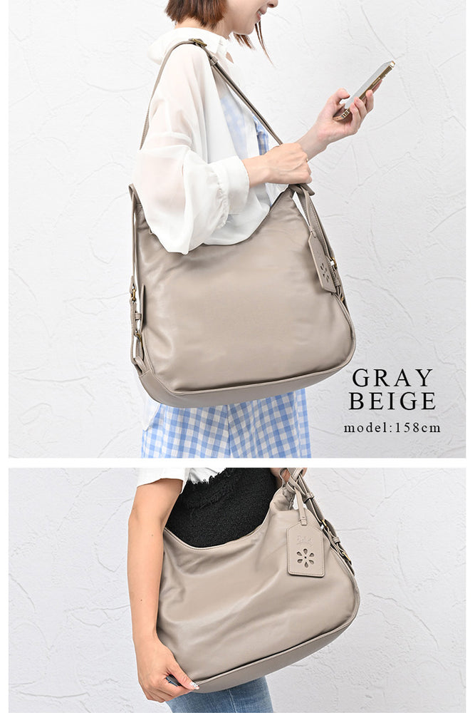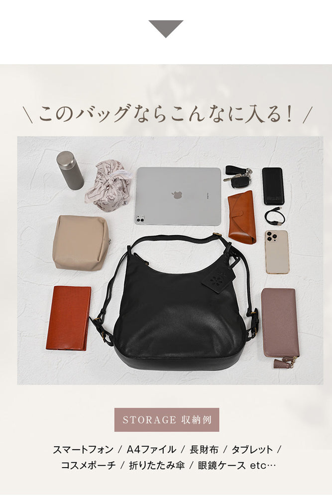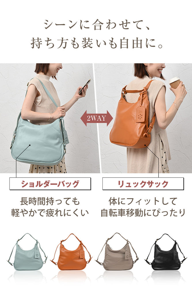 軽量で扱いやすい革はデイリーに活躍してくれます。開口部はファスナーで開閉し、大開口で内装生地も明るく、中身が見やすい作りとなっています。レザーと嫌味にならないアンティークゴールドのパーツの組み合わせがナチュラルな雰囲気を演出します。