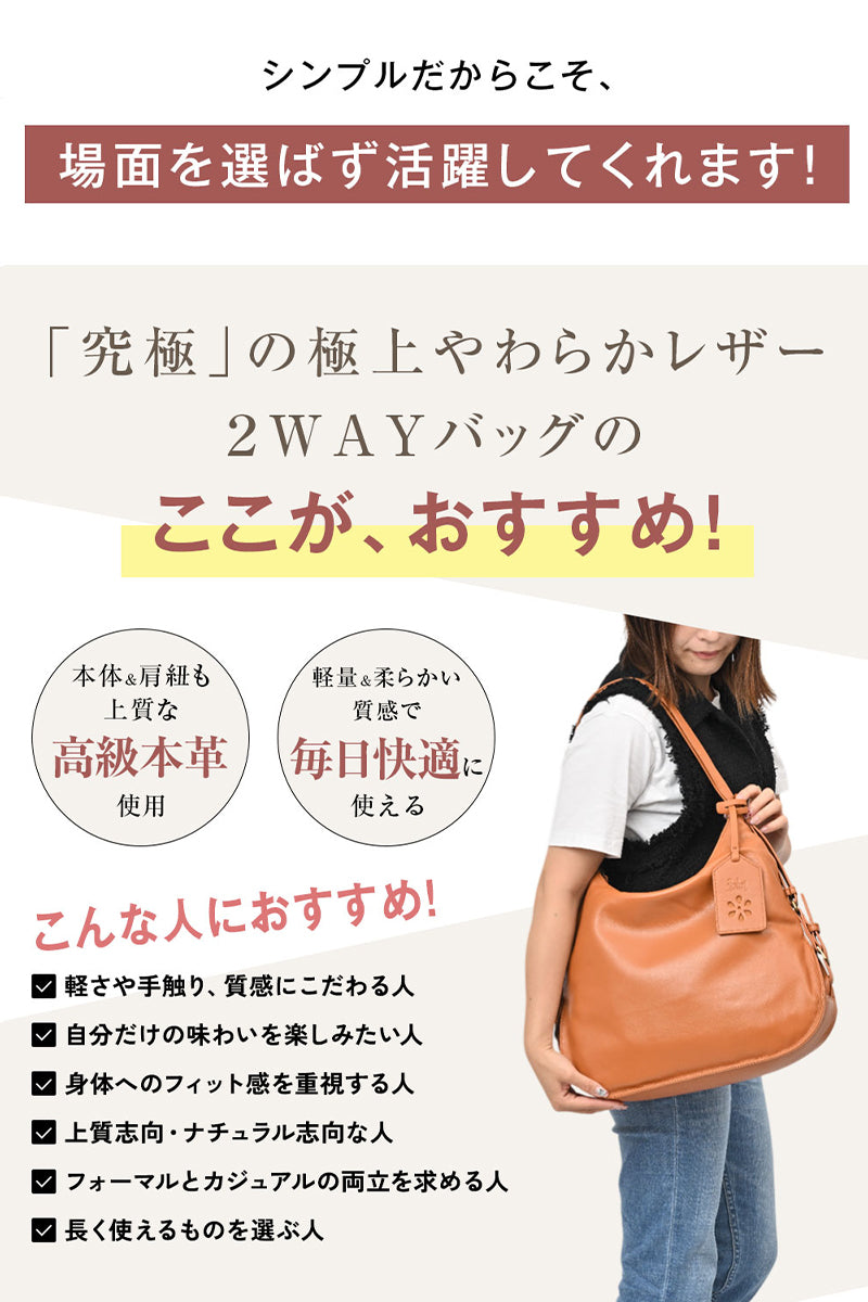 2wayで使えるショルダーバッグです。A4サイズを収納できるのでお仕事用にも最適です♪。コーデ合わせて、斜めがけでもセミショルダーで肩掛けしてもOK。
